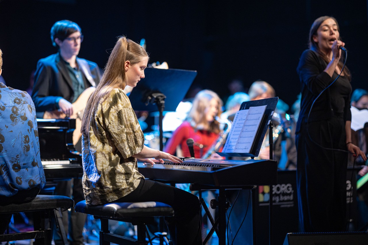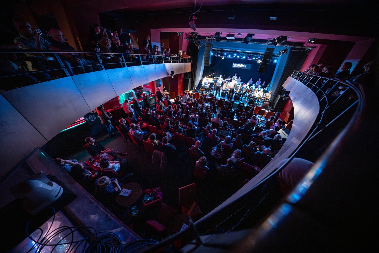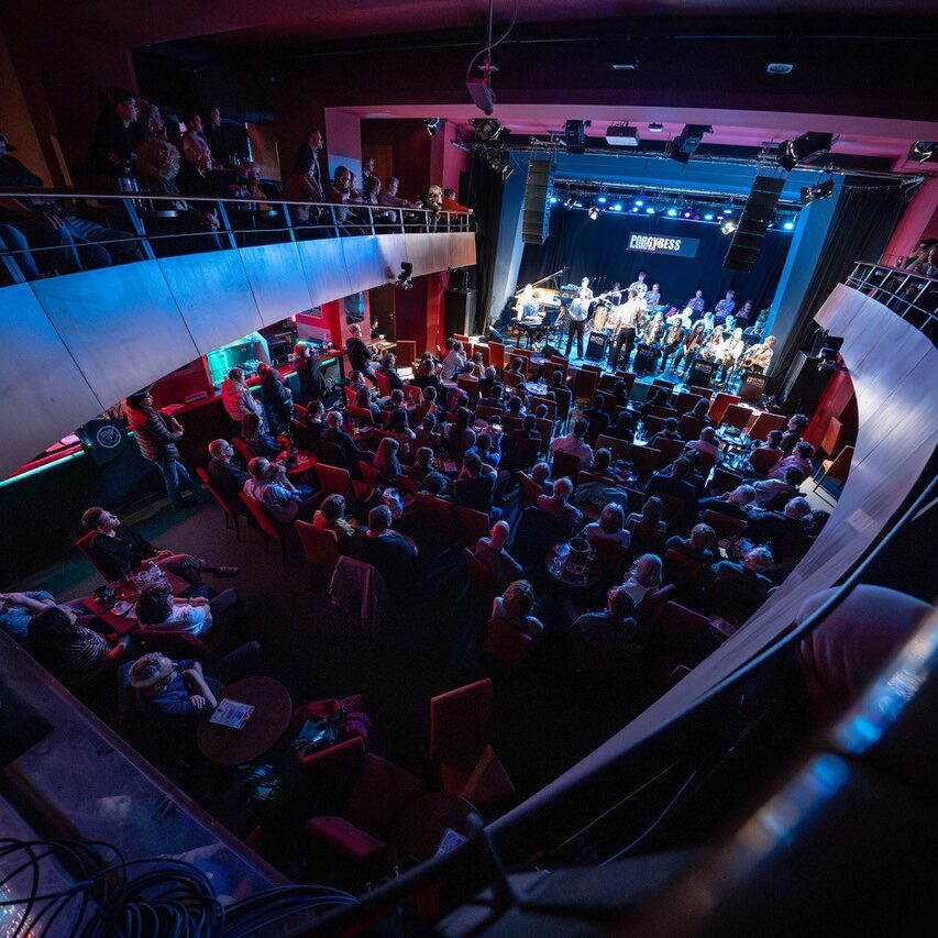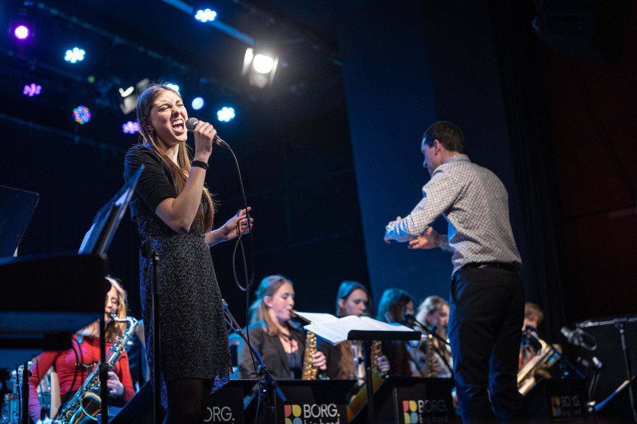 Am Sonntag, dem 08. März 2026 füllte die rund 25-köpfige Schulband unter der Leitung von Prof. Markus Osztovics die Bühne des legendären Wiener Jazzclubs Porgy & Bess. Katharina Osztovics führte am Weltfrauentag durchs dichte Programm. Elena Haidbauer aus der 8M1 eröffnete routiniert mit „Stupid Cupid“ gleich im zweiten Stück das abwechslungsreiche Programm an Solo-Sänger:innen. Im Anschluss coverte Wuk Pavlovic mit „Schreib a Liad“ von Sebastian Holzer einen BORG-Absolventen. Passend zum Anlass – Stichwort: Weltfrauentag – begab sich Amelie Preissinger auf Aretha Franklins Spuren, was ihr außerordentlich gut gelang, bevor es mit „Don´t know why“ – gesungen von Anahit Saribekyan – für einen Moment ruhiger wurde.
