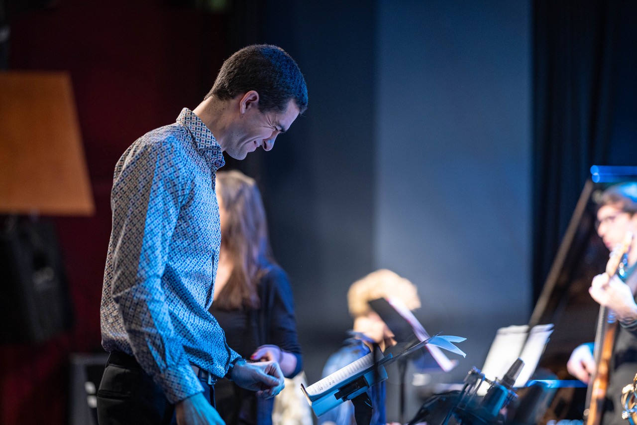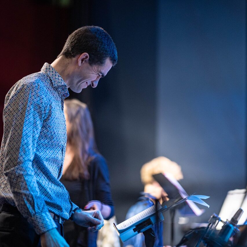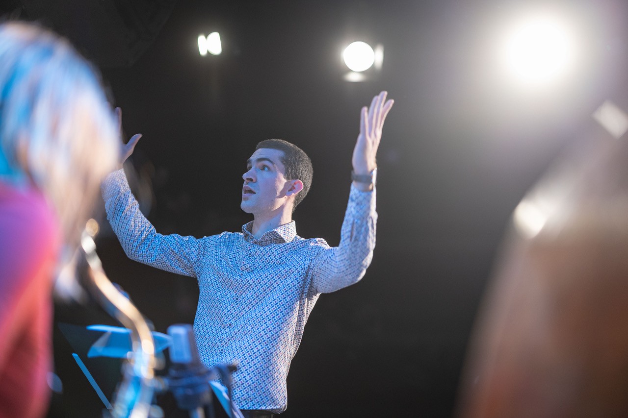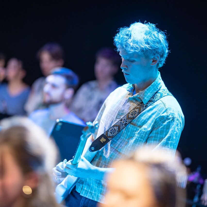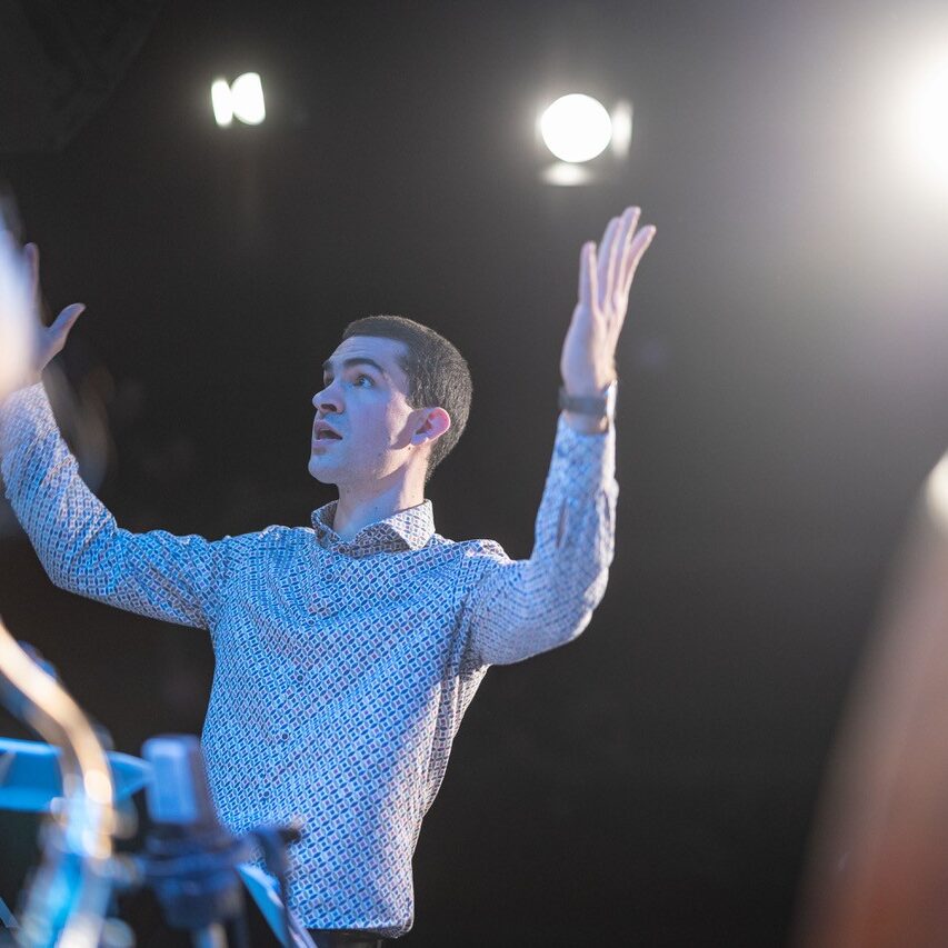 Apropos „Schulband“: Diese Bezeichnung mag zwar stimmen, wird der Professionalität dieser Truppe allerdings bei weitem nicht gerecht. Dem Publikum wurde an diesem Sonntag eine Performance geboten, die dem ehrwürdigen Wiener Jazzclub, bei dem internationale Größen der Musikszene ein und aus gehen, in allen Belangen gerecht wurde. Die vielen perfekt exerzierten Solis offenbarten das musikalische Können unserer Schüler:innen. Ob Emanuel Pachler an der Posaune, Esther Graggaber am Sax, Toni Bertz an der E-Gitarre oder Valentin Narosy am Kontrabass – es waren zu viele, um sie hier alle zu nennen. Wenn der Blick zwischendurch dann einmal zum „Bandleiter“ Prof. Osztovics wandert, wird schnell klar, warum diese Band und ihre individuellen Akteur:innen so gut und harmonisch interagieren: Seine unglaublich authentische und ermutigende Art und seine bedingungslose Positivität übertragen sich auf den gesamten Saal.