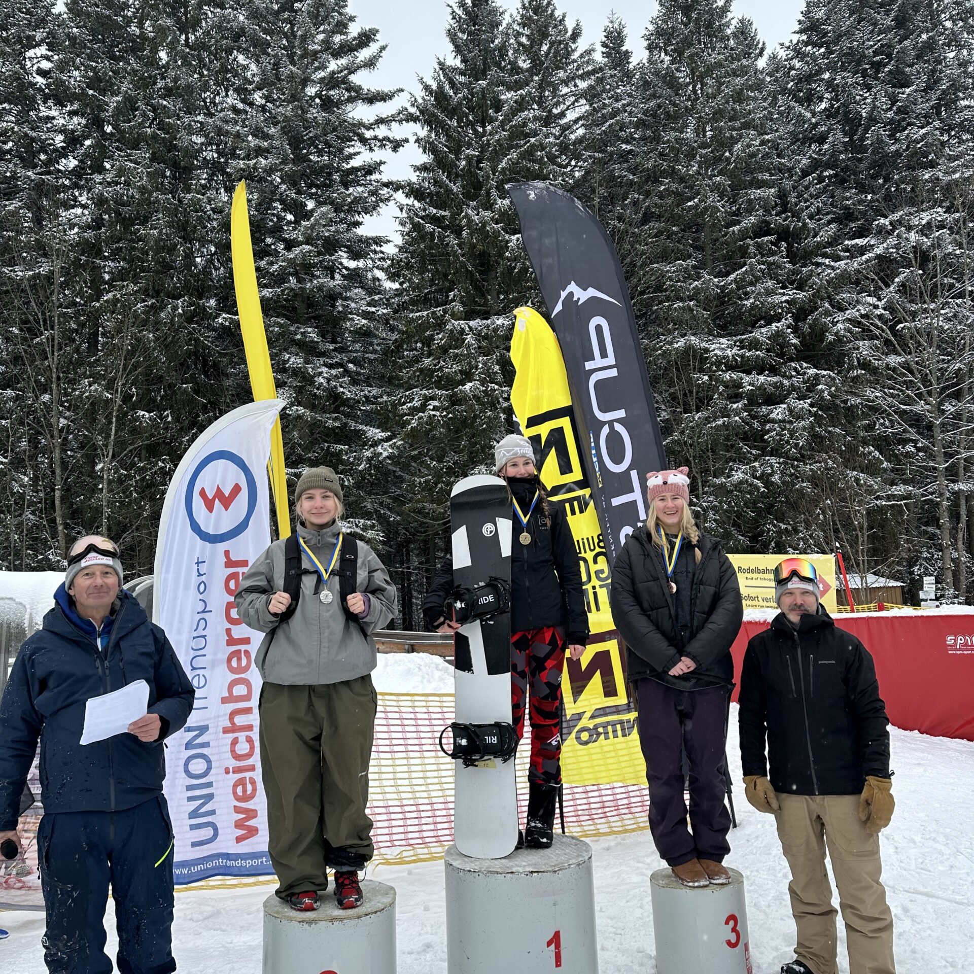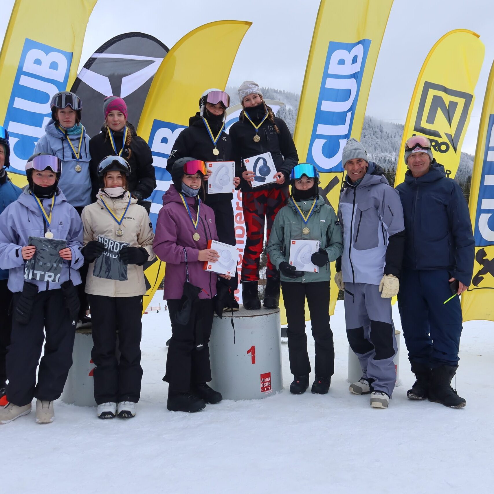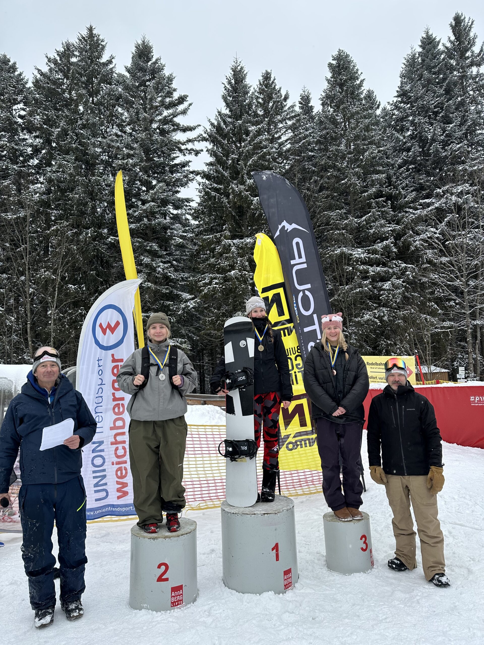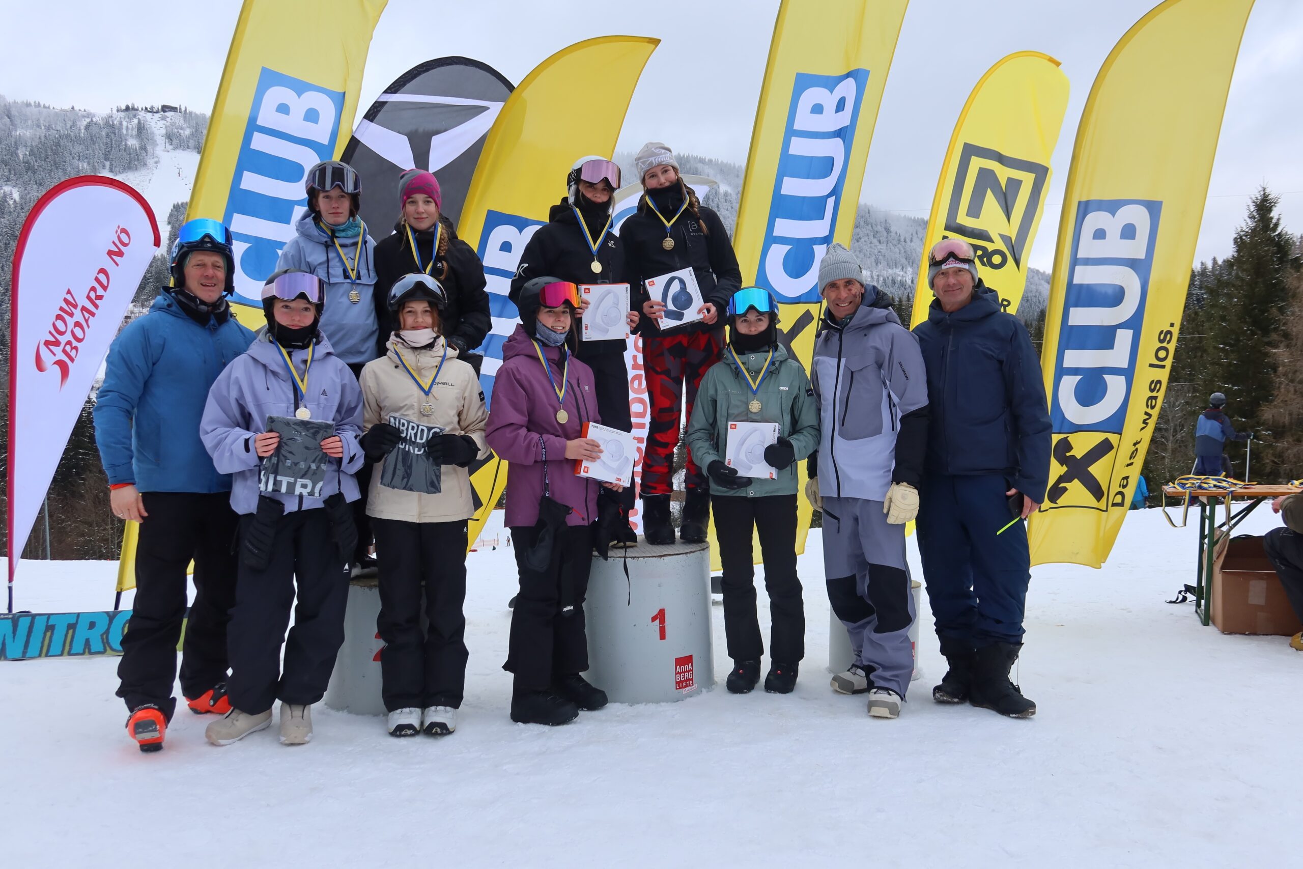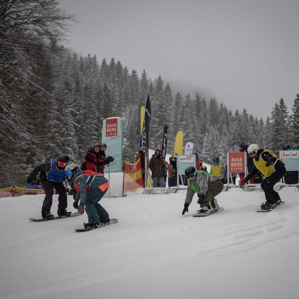 Bereits am Wochenende vor den Schullandesmeisterschaften waren acht Snowboarderinnen und Snowboarder mit Prof. Dominik Weghaupt am Annaberg, um für die Allgemeinen Landesmeisterschaften zu trainieren. Dabei sicherte sich Amon Emma (6s1) den Vizelandesmeistertitel in der Einzelwertung der Allgemeinen Klasse der Damen. Auch beim abschließenden Waterslidecontest zeigten die Mädchen des BORG Wiener Neustadt starke Leistungen: Nina Priibauer (5s1) überquerte trotz kontinuierlicher Verkürzung des Anlaufs als letzte Schülerin des BORG noch erfolgreich das Wasser und erreichte in der Damenwertung den zweiten Platz. Maria Scharfegger (7s1) und Noemi Fink (5s2) belegten gemeinsam den dritten Platz.